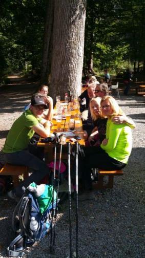 In Heimbuchenthal wurde am Ortsrand ein schöner Rastplatz gefunden. Von dort ging es auf teils urigen Pfaden bzw. Wegen über den Dürrenberg (422 m) nach Krausenbach, dem letzten Einkehrschwung des ersten Wandertages. Durch das lang gezogene Straßendorf (im Spessart durch die engen Täler üblich) und weiterem landschaftlich schönem Weg erreichten die „Melle Kudde“ das Ziel in Hobbach, wo ein zünftiger Abschluss statt fand.