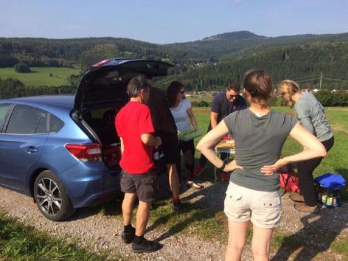 Kurz vor Oberbach hatte sich Julia Ortwein mit ihrem Partner eingefunden und uns mit einer zünftigen Vesper um die Mittagszeit überrascht. Auf anfangs flacher Strecke durch Oberbach und Wildflecken mit einer Rast im freien Gelände (Verpflegung aus dem Rucksack) erreichten wir wieder unseren Ausgangspunkt Ober-Weißenbrunn.