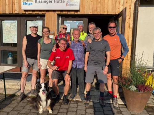 Anschließend wurde die letzte Etappe über den Guckaspaß (200 Höhenmeter Abstieg) zur " Kissinger Hütte" (200 Höhenmeter Aufstieg) unser Tagesziel in 832 m Höhe bei Einbruch der Dunkelheit erreicht. Die Hütte befindet sich auf einer unbewaldeten Anhöhe mit einem herrlichen Ausblick, was die Hochrhön charakterisiert.