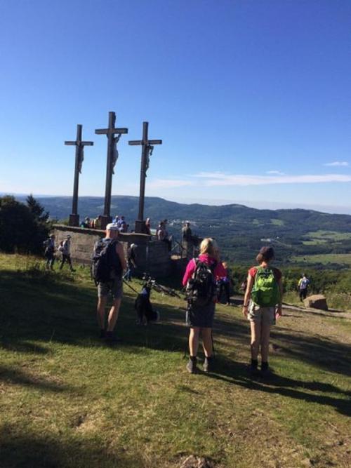 Nächster Anlaufpunkt war der "Kreuzberg" mit einer Höhe von 928 m, markant mit seinen 3 Kreuzen und einem steilen Abstieg auf Treppenstufen zum "Kloster Kreuzberg". Dort stand eine längere Rast mit dem Genuss des des dunklen Klosterbieres auf dem Programm.