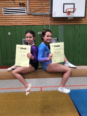 Alexia Lämmer und Emily Ritz turnten im Wettkampf 9a, Riege 9a. Melina Gessel entschied während des Aufwärmens verantwortungsvoll, dass sie krankheitsbedingt nicht teilnehmen kann, obwohl sie die Wochen davor sehr fleißig trainierte.