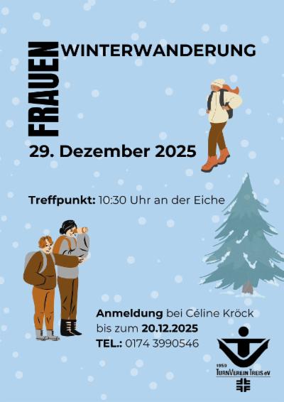 Die Frauen treffen sich am 29.12. um 10:30 Uhr „an der Eiche“. Bitte meldet euch bis zum 20.12. bei Céline Kröck unter 0174 3990546.