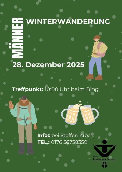 Die Männerwinterwanderung startet am 28.12. um 10 Uhr beim Bing.
